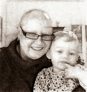 Danach habe ich mich vorbereitet. Das war der Tag an dem ich mir den Kopf kahl geschoren habe. Morgens um 8 Uhr mit einem alten Rasierer meines Schwiegervaters. Als ich dann Haarlos vor meinen WG Mitbewohnern stand, war das natürlich erst einmal ein Schock für alle. Meine Frau wusste ja was ich vorhatte, aber auch sie war ein paar Minuten lang irritiert. Beim Frühstück haben wir lange über meine Entscheidung gesprochen und ich habe viel Verständnis erhalten. Einige Freunde waren die Tage darauf teils so geschockt, dass sie bei meinem Anblick anfingen zu weinen. Und Wochenlang hatte ich ein merkwürdiges Gefühl so ganz Haarlos nach Draußen zu gehen, ich fühlte mich angestarrt. Aber die Zeit verging und meine Glatze wurde zur Normalität. Das Bild ist übrigens kurz nach meiner ersten Rasur entstanden. Damals war meine Tochter 2 Jahre alt. An meine Haare kann sie sich nicht mehr erinnern. Sie liebt es über meinen frischrasierten Kopf zu streicheln und wenn die ersten zaghaften Haarstoppeln sprießen, dann lächelt sie und sagt: "Mami du kratzt, du musst dich wieder rasieren". Am Anfang rasierte ich mich jeden Tag. Im Laufe der letzten Jahre wurde der Abstand immer größer. Heute rasiere ich mich maximal zwei Mal die Woche.